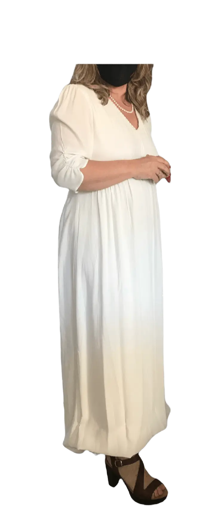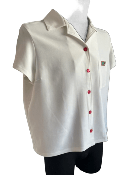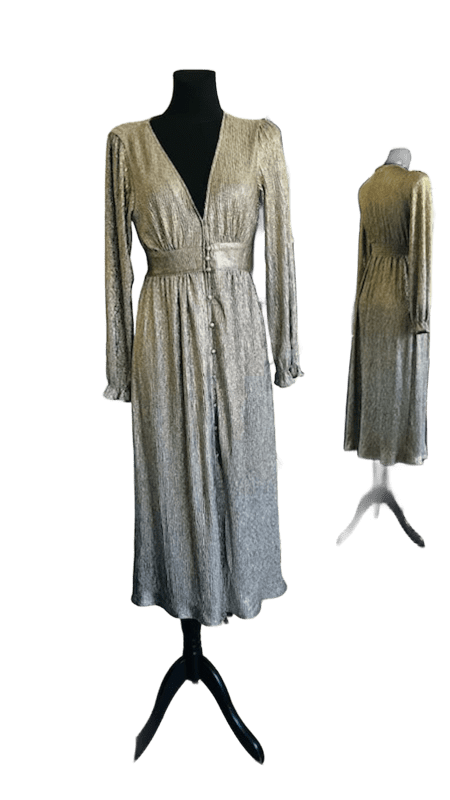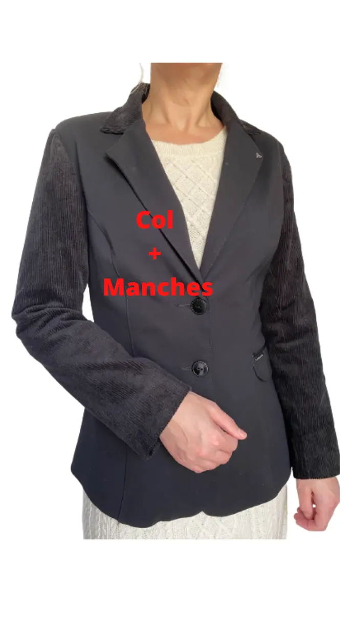 Cette pièce a été ajustée pour être rétrécie à la taille selon les besoins de la cliente, assurant ainsi une coupe plus cintrée et élégante.